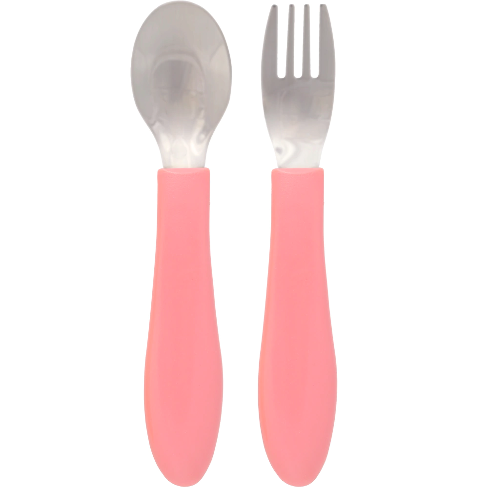 Material/Composição: Colher e garfo: aço inoxidável; cabo: Acrilonitrila Butadieno Estireno.