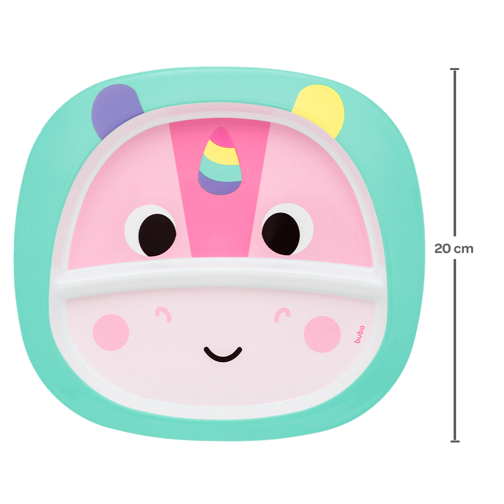 Pratinho Bubazzo Unicórnio é ideal para bebê que estão começando a introdução alimentar. O desenho de Dino é colorido e lúdico, ajuda entreter e estimular os pequenos durante as refeições. O pratinho tem 2 divisórias para separar as porções dos alimentos, e permite que o bebê possa experimentar cada uma das coisas e aprenda a diferenciar sabores, texturas e densidades. Fácil de usar e limpar, ideal para o dia a dia.